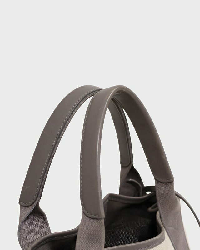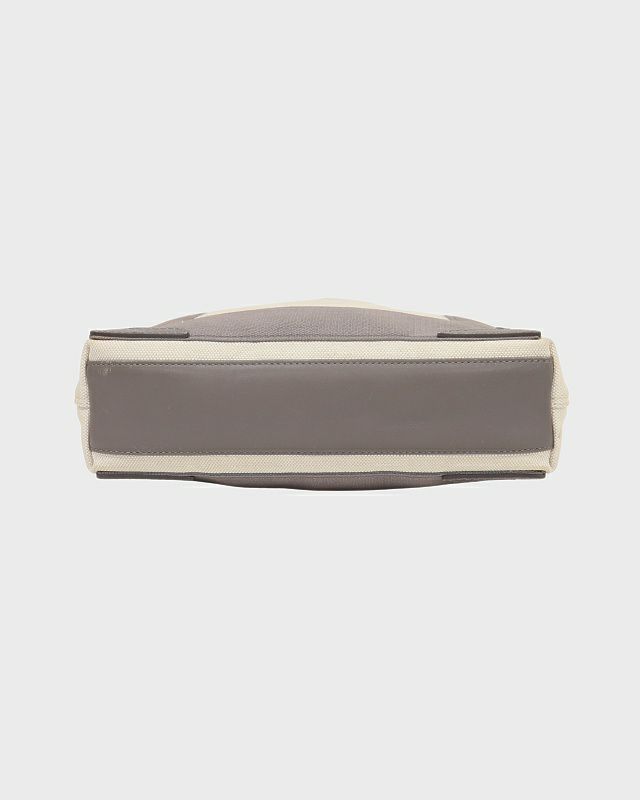 顏色/材質: 象牙×灰色 / 帆布×牛皮 尺寸:W24cm(底面)×H19.5cm×D7cm 肩帶最長約113.5cm 式樣: 主口袋 x1 外側狀態C 等級:整體有些使用感,皮革部分有些劃痕,帆布部分有些污漬。※肩帶部分的皮革有些開裂,折痕和劃痕。 內側狀態B 等級:有些使用感和污漬,皮革部分有些劃痕。 附屬品專用肩帶,專用包